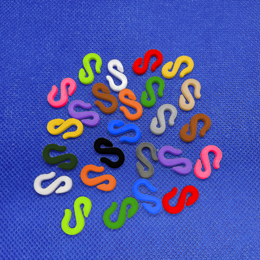 Haczyki wykonane metodą druku 3D z materiału PETG.