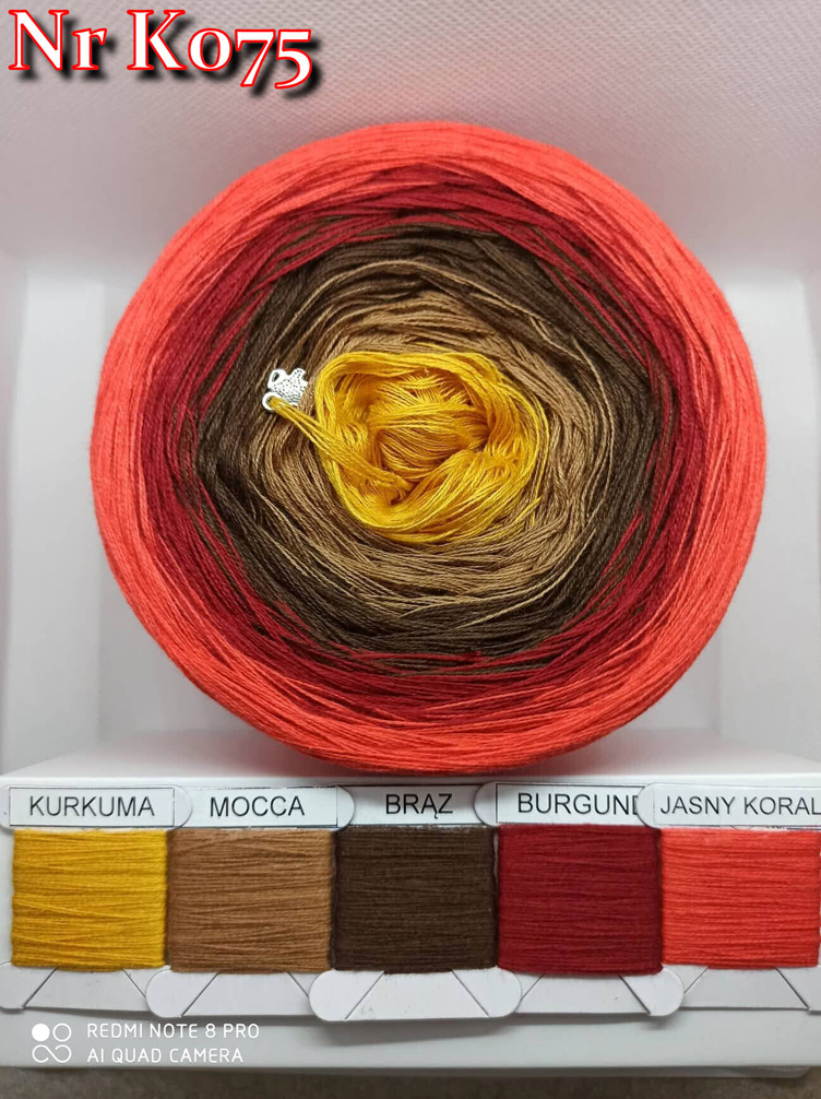 Kolory: Kurkuma/mocca/brąz/burgund/jasny koral